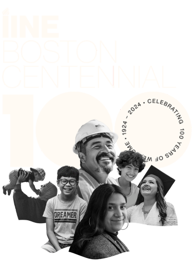 Show your support of our refugee and immigrant community members by purchasing IINE merch. Visit our store for sweatshirts, t-shirts, tote bags, pins, and notebooks (plus limited edition merch for our Boston Centennial!).